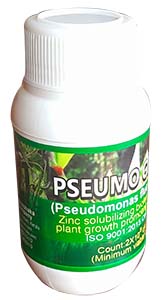 Pseumo green™ (Pseudomonas fluorescens) is a broad spectrum Rhizobacterium that performs as a bio control agent and plant growth promoter. This bacterium controls pathogens by means of competition, hypherparasitism, antibiosis and induced systemic resistance. This product is formulated as wettable powder or as liquid formulation containing a minimum of 2 X 10 8 viable cells of Pseudomonas fluorescens. This can be used to control Panama wilt in banana, Damping off in vegetable, stem rot in groundnut, white leaf, spot disease in Amaranthus, fungal and bacterial diseases of Paddy and other cereals, Cardamom, Coffee, Tea and other crops. This is particularly effective against sheath blight and leaf spot in Paddy. Pseudomonas fluorescens also improves plant growth through the release of growth promoters – IAA, Gibberellins and .It increases the soil fertility by solubilizing unavailable phosphorus and other micro nutrients.