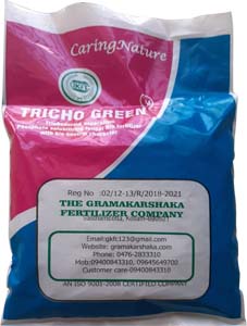 Tricho Green™ (Trichoderma viride and Trichoderma harzianum) are such group of antagonistic fungal or bio-agents that are capable of combating a number of fungal diseases of crop plants. It is soil borne free living (living on dead organic matter) fungal agent that grows abundantly and produces millions of minute green coloured spores. These highly virulent broad - spectrum bio agents are formulated as wettable powder or liquid formulation containing a minimum of 2 X 10 8 viable Trichoderma spores per gram of carrier material. Tricho green™ can be used against soil borne fungal pathogens like fusarium, phytopthora, rhizoctonia, pythium etc., which causes plant diseases like wilt, damping off, vascular wilt, root rot, rhizome rot and vine wilt in crops viz. pepper (quick wilt disease), cardamom, Ginger (azhukal and rhizome rot diseases), clove, banana, grapes, citrus, vegetables, tea, coffee, tuber crops like potato, floriculture crops, etc.