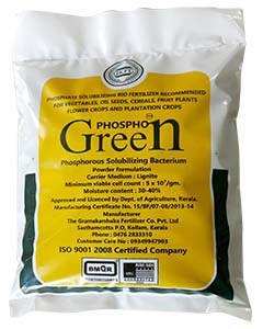 Phospho Green is a highly efficient species of Phospho bacterium capable of releasing fixed and unavailable phosphorus in the soil by secreting highly beneficial enzymes and organic acids. This bacterium can be used for most of the crops for their phosphorus nutrition. The product is formulated as wettable powder or liquid formulation containing a minimum of 2 X 108 viable Phosphobacteria spores per gram or ml of carrier material. Inoculation of 2kgs or 400 ml of Phospho green per acre as soil application helps in saving 20 to 25% of chemical Phosphorus needs of crop plants. Phosphobacterium also causes general improvement in plant growth and mineral uptake as it produces plant growth regulators like indole acetic acid (IAA), gibberellins (GA) and cytokinins.