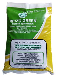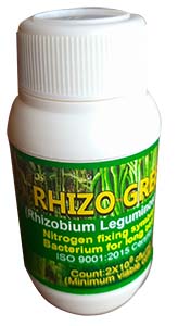 Rhizo Green is a bio fertilizer containing Rhizobium leguminosarum, a nitrogen-fixing bacterium living in symbiotic association with root nodules of many leguminous crops. These bacterium fix atmospheric nitrogen for the benefit of the plant in which they live. A minimum of 50kg N/ha/season is fixed and mineralisation of other nutrients are enhanced by this efficient species of bacterium. The product is formulated as wettable powder and liquid formulation containing a minimum of 2 X 108 viable Rhizobium cells per gram or ml of carrier material. This product effectively nodulates legumes after the application ensuring fixation of nitrogen.