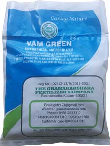 VAM green is a mycorhizal bio fertilizer containing plant growth promoting fungal spores. This symbiotic fungus enhances productivity as well as nature of soil and its fertility. VAM forms beneficial association with plant roots and increases it’s health, vitality and stress tolerance capacity. This promotes plant growth by helping better absorption and assimilation of nutrients and water. The product is formulated as wettable powder containing a minimum of 100 viable VAM spores per gram of carrier material.