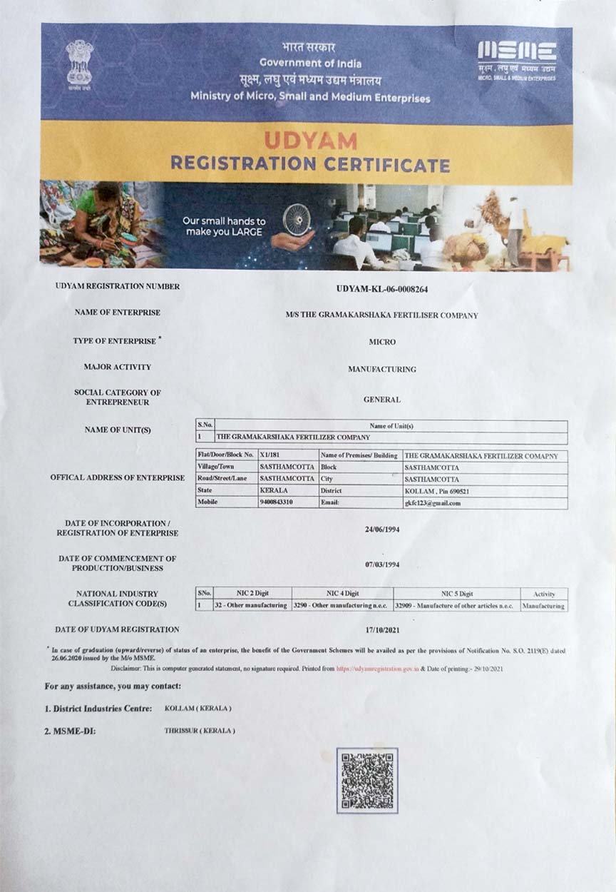 Grama Karshaka Fertilizer Company is ISO Certified
